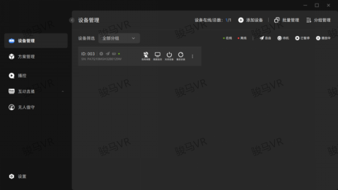 2、中控設(shè)備狀態(tài)顯示及異常報警:中控系統(tǒng)能夠?qū)崟r顯示每一臺VR頭顯是否連接正常、設(shè)備號等信息,可以管理客戶端設(shè)備。