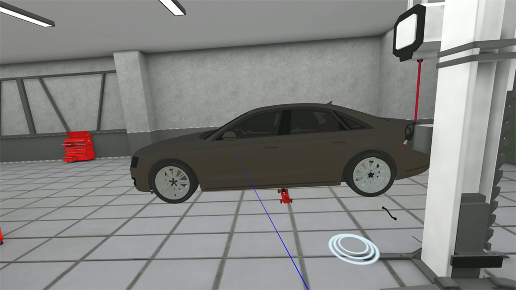 VR汽車輪毅改裝場景,還原汽車車間和換輪毅操作流程,服刑人員帶上VR眼睛,沉浸式學習換輪毅拆裝,換輪毅工具的識別和工具操作,讓服刑人員可以在虛擬場景中反復實踐,學習汽車輪胎修補技能。
