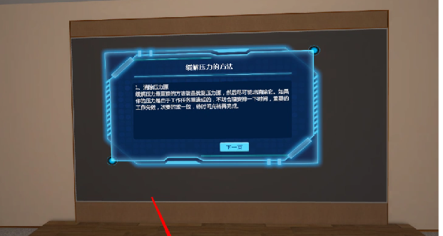場景精確復現(xiàn)社區(qū)矯正中心的“三區(qū)十八室”,體驗者仿佛置身其中,可自由漫游和互動。系統(tǒng)還配備語音介紹每個科室,助力體驗者更深入地認識和了解社區(qū)矯正中心。