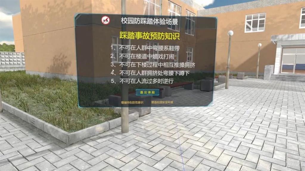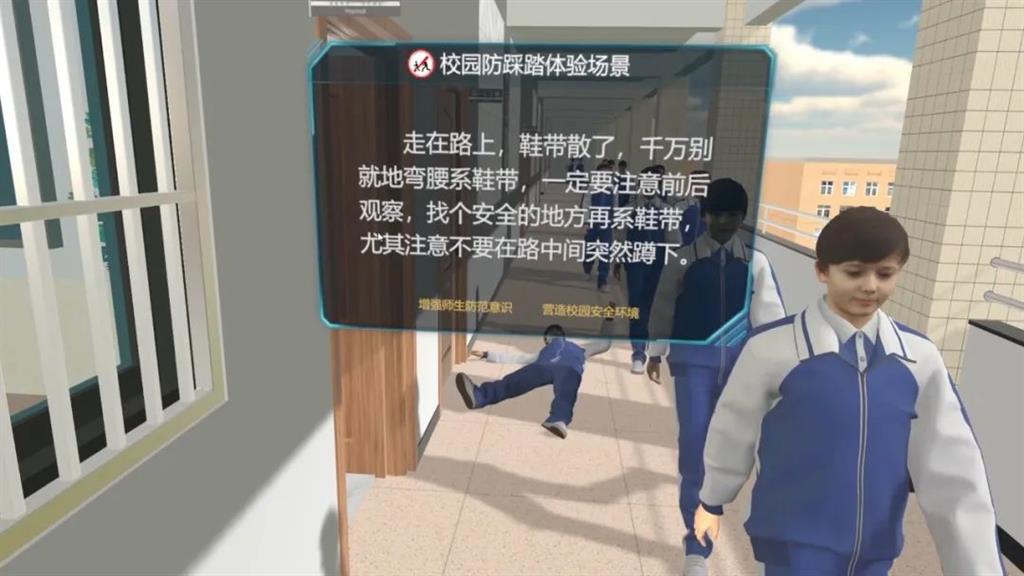 駿馬校園VR防踩踏體驗場景軟件通過VR情景式模擬+防踩踏知識的結(jié)合方式,有效增強了學生的安全防護意識,我們雖然無法提前預知災難,但可以做到防患于未然。在虛擬場景中,學生可以通過體驗踩踏事件的全過程,學會自我保護的技能。