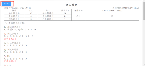 考試完成后可以查看考試成績。