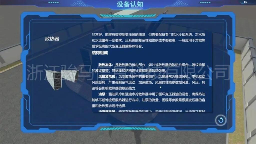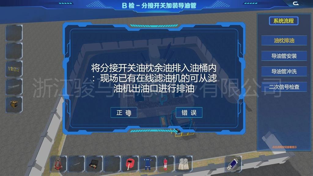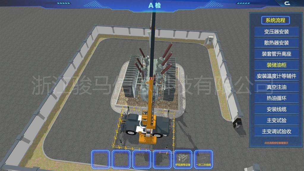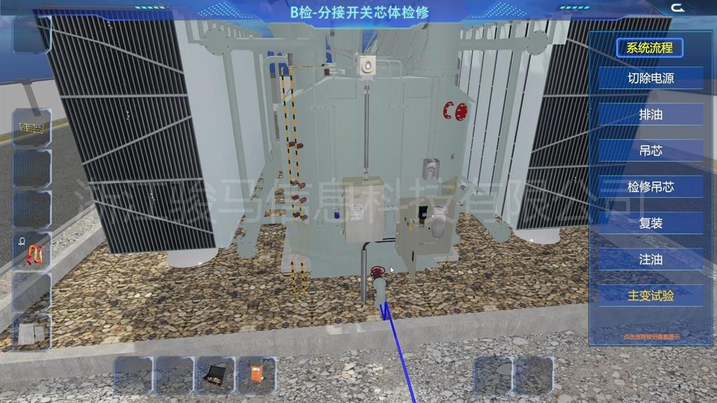 在軟件中,用戶(hù)可以體驗(yàn)到每個(gè)設(shè)備的維護(hù)工作,包括變壓器、分接開(kāi)關(guān)、儲(chǔ)油柜、散熱器、套管、瓦斯繼電器、溫度計(jì)和在線濾油機(jī)等關(guān)鍵部件。通過(guò)模擬體驗(yàn),掌握變壓器維護(hù)操作。