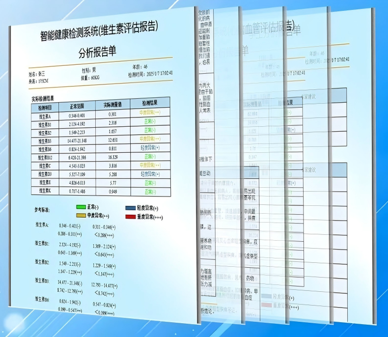 AI健康分析儀提供了46種健康指標(biāo)的檢測(cè)報(bào)告,涵蓋心血管、免疫系統(tǒng)、內(nèi)分泌等多個(gè)方面,幫助用戶全面了解身體狀況。設(shè)備采用非侵入式檢測(cè)方式,無(wú)需抽血或復(fù)雜操作,接觸即可完成數(shù)據(jù)采集。