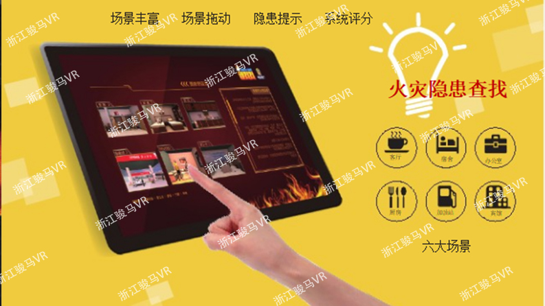 火災隱患查找是基于一體機互動操作的消防安全教育軟件,結合了三維數(shù)字模型技術,真實的還原各個火災隱患場景,體驗者親身操作,分別找出廚房、客廳、賓館、宿舍、辦公室、加油站等場景中隱患點, 完成火災隱患排查。