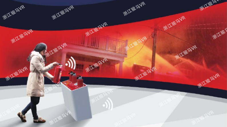 本系統(tǒng)由計算機軟件、專用主機、顯示屏、感應設備共同組建,可以使體驗者通過手持仿真的滅火器,對屏幕中的各類火災場景進行滅火體驗,通過對不同場景的識別選擇滅火器,真實互動體驗的同時又能學習到各種場景與滅火器的使用知識。