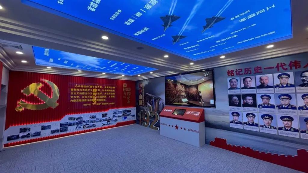 展館以黨建文化為主題,分別以“不忘初心、牢記使命”、“紅色血脈”、“紅色記憶”、“紅星閃耀”、“搏擊長空”5大展項(xiàng)展開闡述黨與軍人的故事。