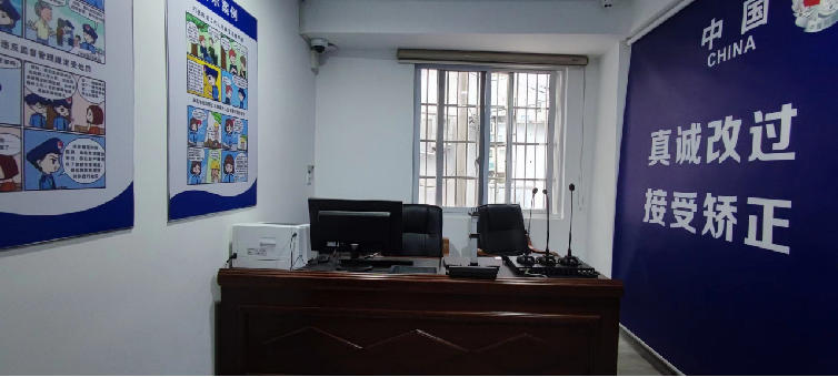 訓(xùn)誡室、宣告室等功能室主要用于對社區(qū)矯正對象進(jìn)行訓(xùn)誡和組織開展社區(qū)矯正對象的入矯宣告和解矯宣告,我司對此以警藍(lán)為基調(diào)設(shè)置,莊重嚴(yán)肅,標(biāo)語、制度懸掛。其中訓(xùn)誡室“接受矯正、接受矯正”8個大字為社區(qū)矯正人員的改造指明了方向。